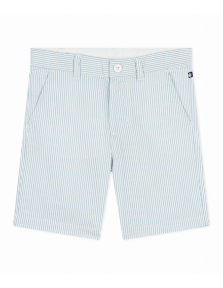 Bermuda short garçon en seersucker, une matière légère, fine et souple, légèrement gaufrée.