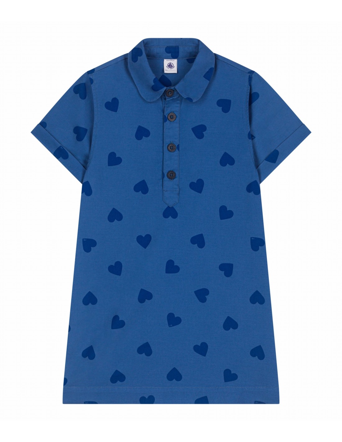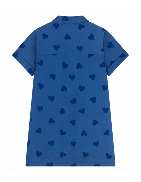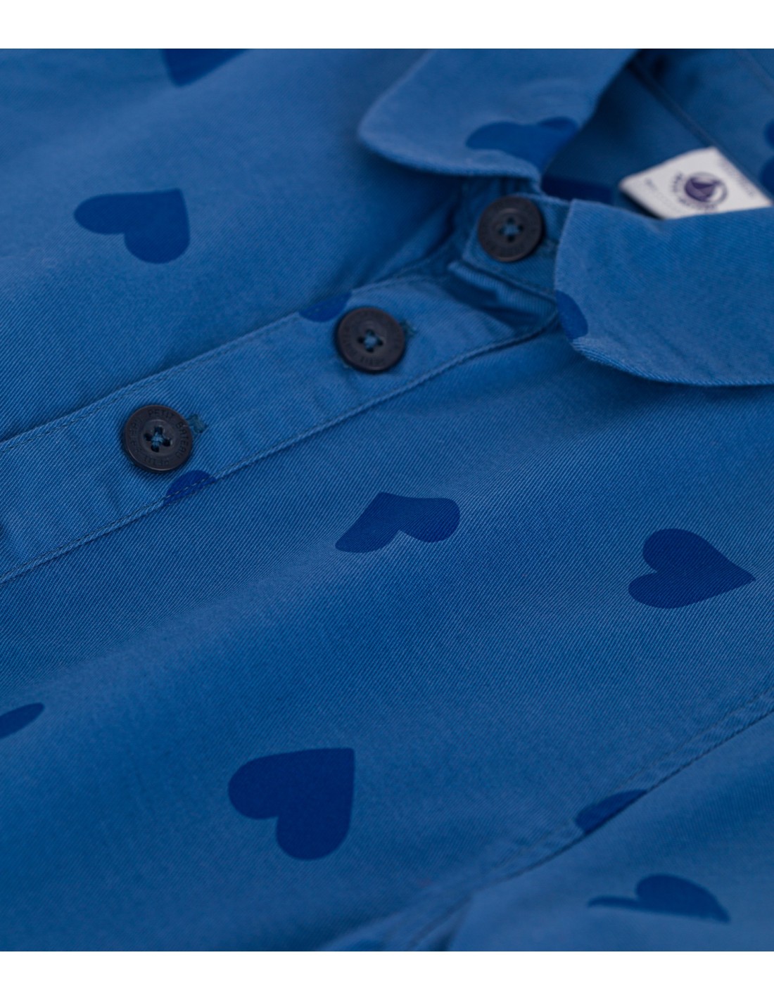 Robe chemise fille en twill à imprimé coeurs, une matière légère et agréable à porter.