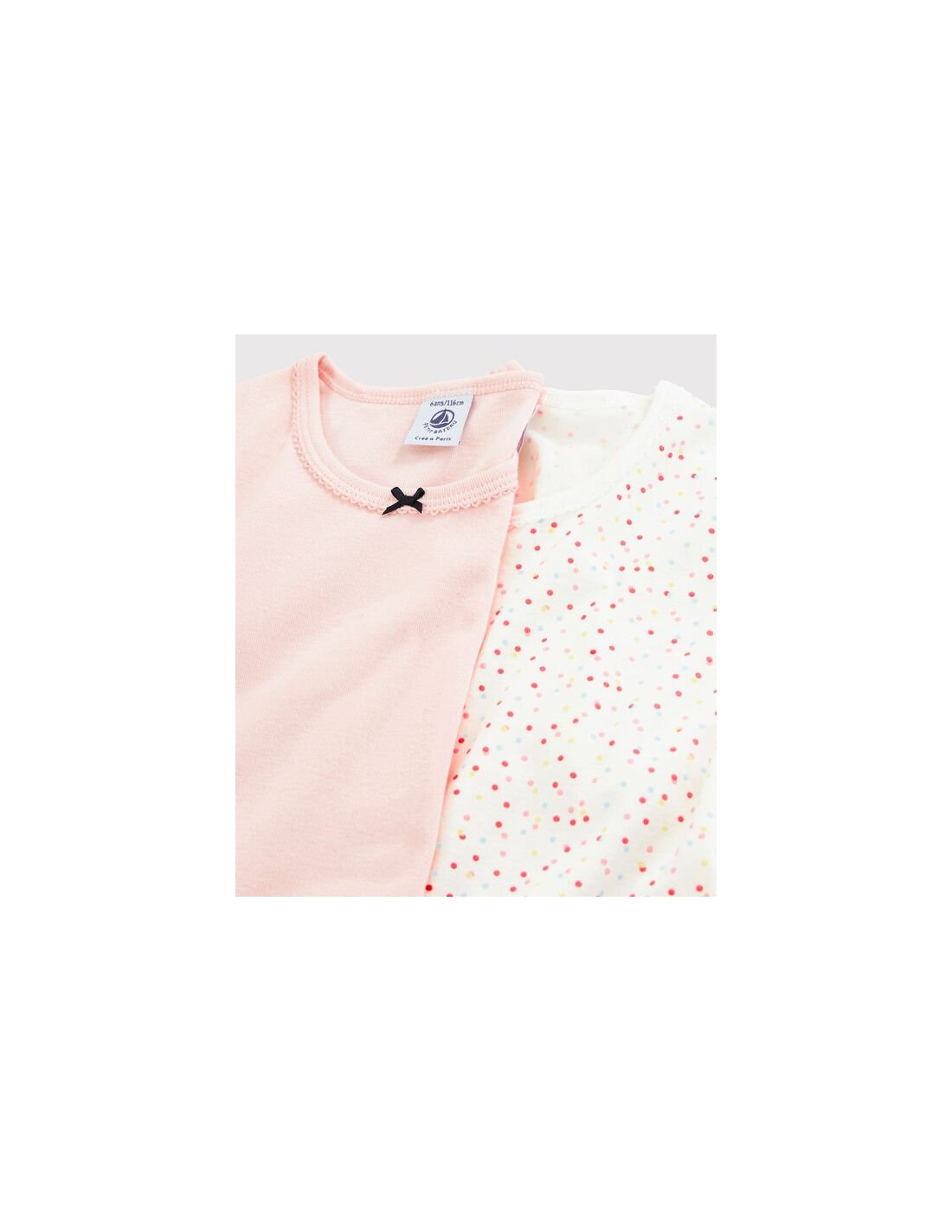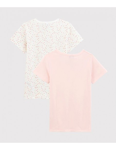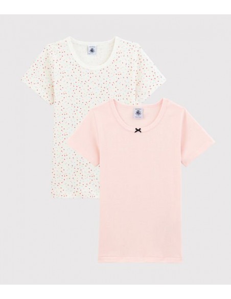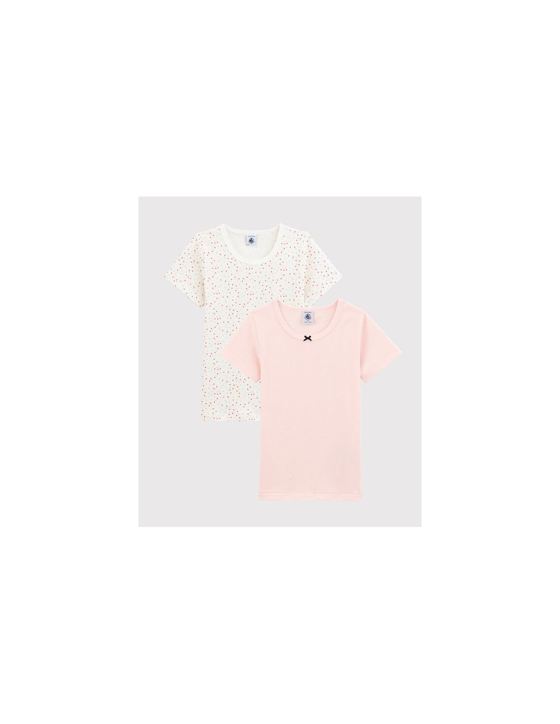 2 tee-shirts manches courtes en côte, la matière emblématique de Petit Bateau.