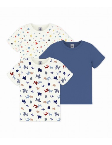 Lot de 3 tee-shirts garçon manches courtes en côte 1x1, une matière extensible et confortable.
