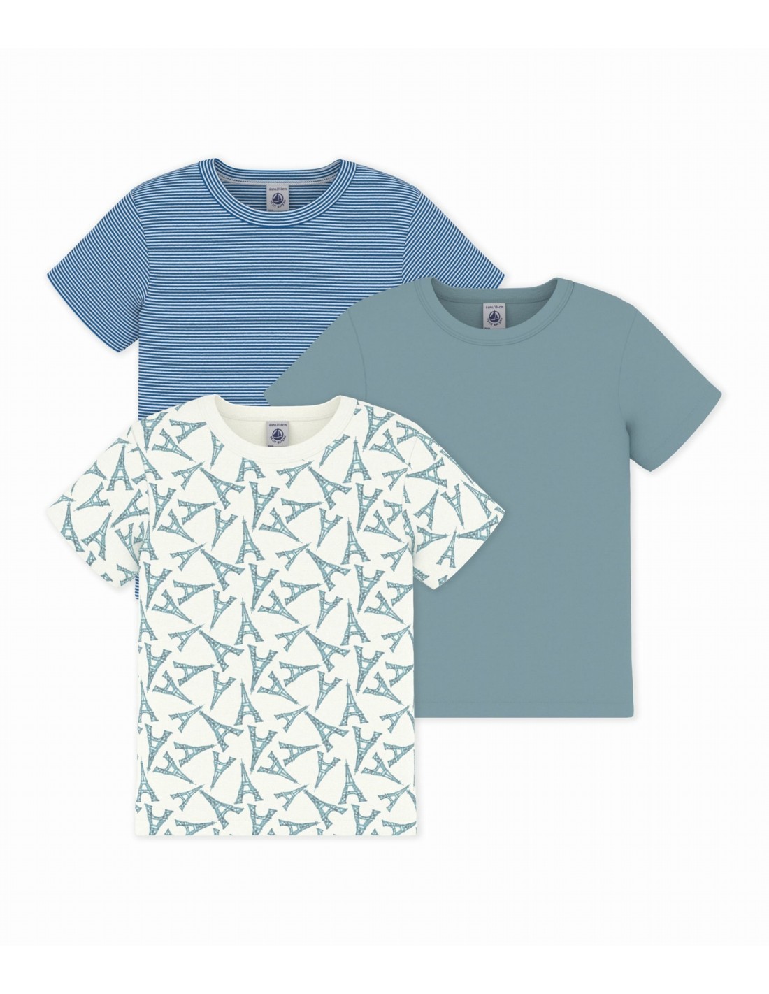 Lot de 3 tee-shirts garçon manches courtes en côte 1x1, une matière extensible et confortable.