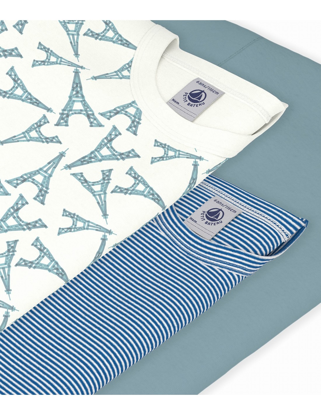 Ce lot comprend un tee-shirt en côte 1x1 unie, un tee-shirt en côte 1x1 rayures milleraies et un tee-shirt imprimé Tour Eiffel.
