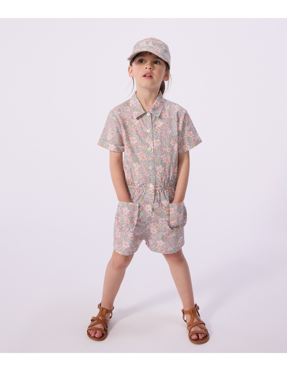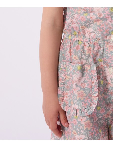 Combinaison fille à manches courtes en popeline légère, fine et souple.